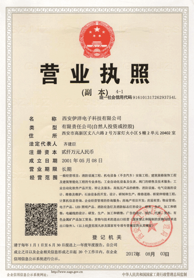 西安伊洋電子科技有限公司,成立于2001年,坐落于陜西西安,是國內具有消防設施施工一級資質,專業(yè)從事智能建筑消防設施工程,機電設備安裝工程的專業(yè)公司;是陜西省、西安市民營科技企業(yè),中韓企業(yè)合作促進會理事單位,中國消防企業(yè)聯(lián)盟委員會會員單位,2013中國消防行業(yè)十大科技創(chuàng)新企業(yè)。西安伊洋電子科技有限公司在2014年2月注資成立...>>詳細內容